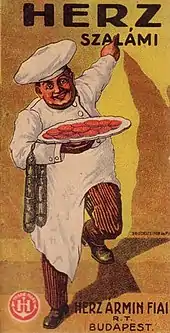 Hungarian Herz Salami poster, an advertisement from Budapest, 1900
