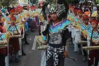 The parade marches their route throughout the city, announcing their presence with music played by a Drumblek, which is a traditional drum band originated in Salatiga. This form of cultural music is played from repurposed materials such as barrels. It was pioneered by the artist Didik Subiantoro Masruri in 1986. This particular band style based on recycled items was a result of the lack of funds in celebration of Indonesia’s Independence Day.