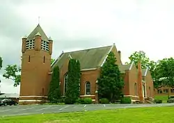 Construction of the church's current building began in 1894.[3] Its sanctuary has several large stained glass windows.[6] It was designed by architect A. Page Brown.[5]