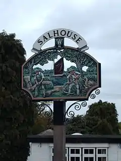 Salhouse is first recorded in 1291 as Salhus.[9] The first element is believed to derive from Old English salh "sallow",[10] a kind of willow. The word still exists in dial. English saugh. Sallow descends itself from OE inflexional salg- (ME salwe).[11]