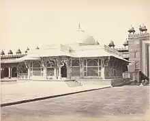 The Mughal Emperor Akbar came to Chishti's home in Sikri to ask him to pray for a male heir to the throne. Chishti blessed Akbar, and soon the first of three sons was born to him. After a year Mariam-uz-Zamani the queen had a son. Akbar named his first son 'Salim' (later emperor Jahangir). Akbar built Fatehpur Sikri in honour of Chishti.[2] A daughter of Sheikh Salim Chishti was the foster mother of Emperor Jahangir. The emperor was deeply attached to his foster mother, as reflected in the Jahangirnama[3] and he was extremely close to her son Qutb-ud-din Khan Koka who was made the governor of Bengal and Orissa.[4]