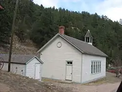 Salina is a former mining town in Boulder County, Colorado, United States, approximately 7 miles (11 km) west of Boulder. Established in 1874, after Colorado's first gold discovery in 1859, Salina was founded by miners who migrated to Boulder from Salina, Kansas.[1][2] It is located at the junction of Four Mile Canyon and Gold Run roads. The mining camp was originally accessible only by horseback or wagons pulled by mules but later became part of Colorado's Switzerland Trail when the Greeley, Salt Lake, & Pacific narrow gauge railroad was built in the early 1880s.[3] Today, most of Salina's original structures still stand, including the one-room schoolhouse, Salina School, and church, the Little Church in the Pines, despite some impact from the Fourmile Canyon wildfire in 2010 and historic flooding during the 2013 Colorado floods.[4][5]