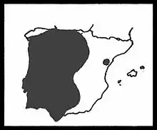 It is an endemic of the Iberian Peninsula, where it is found in the center and in the western half. Abundant in the Central System, Montes de Toledo, Sierra Morena, Extremadura, Duero depression, Tagus depression, Guadiana depression.