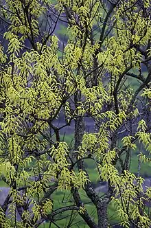 Salix tetrasperma, commonly called Indian willow, is a medium-sized tree of wet and swampy places, shedding its leaves at the end of monsoon season. It flowers after leafing. The bark is rough, with deep, vertical fissures and the young shoots leaves are silky. The leaves are lance-like, or ovate-lancelike, 8–15 cm long, with minutely and regularly toothed margins. The male sweet scented catkins are 5–10 cm long, and are borne on leafy branchlets. The female catkins are 8–12 cm long. The capsules are long, stipulate, in groups of 3 to 4.