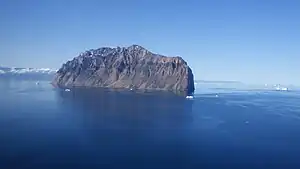 The island is very mountainous, consisting of an isolated and flooded mountain peak, with precipitous walls falling from the summit (1,070 m (3,510.5 ft)) in all directions.[1]