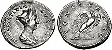 Denarius depicting Matidia; the reverse, depicting an eagle with the legend CONSECRATIO, commemorates her consecration as a diva