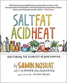 Salt Fat Acid Heat: Mastering the Elements of Good Cooking is a 2017 cookbook written by American chef Samin Nosrat and illustrated by Wendy MacNaughton. The book was designed by Alvaro Villanueva.[1] It inspired the 2018 American four-part cooking docu-series Salt Fat Acid Heat.