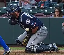 The Toronto Blue Jays signed Saltalamacchia to a minor league contract on February 6, 2017, with an invitation to spring training.[81] He was ultimately named to the Blue Jays' opening day roster as a backup catcher for Russell Martin, and he got his first start of the season on April 7, catching for Francisco Liriano.[82] After Saltalamacchia demonstrated difficulties at the plate, going 1-for-25 with 16 strikeouts in 10 games, the Jays recalled Luke Maile from the minors as his replacement.[83] Saltalamacchia was released from the Blue Jays on May 3 but signed a new minor league contract two weeks later and was assigned to the Triple-A Buffalo Bisons.[84] Saltalamacchia's offensive difficulties continued in the minor leagues, and after he batted .162 in 33 games, the Bisons released him on June 30, 2017.[85] Saltalamacchia revealed later that his struggles at the plate were due in large part to the fact that his wife was undergoing health issues at home. As a result, his "mind wasn't there" during games.[86] He spent the remainder of the season serving as a fill-in color commentator for the New England Sports Network (NESN).[87]