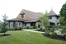 Originally known as Wakehurst, a mansion built in 1887 for James J. Van Alen, was acquired by the university from the Van Alen family in 1972. A replica of Wakehurst Place in England, Wakehurst houses classrooms and faculty offices and serves as a hub for student recreational activities and campus events. The name was changed to Gerety Hall in May 2019 after the retirement of president Jane Gerety.[36][38]