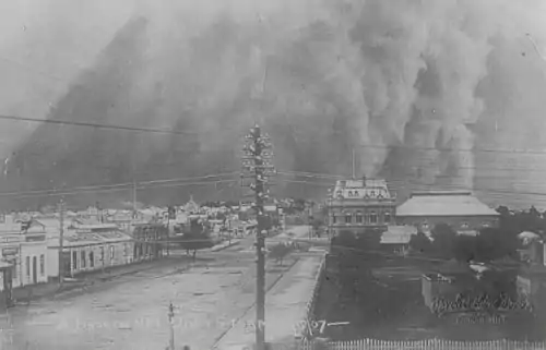 Another industrial dispute, the Great Lock-out of 1909, resulted in the closure of two of Broken Hill's major mines, leaving over a thousand men without work. Byrne continued working but paid a union levy to support out-of-work miners.[23] English socialist Tom Mann was brought into Broken Hill to act as an industrial organiser.[16] G. D. Delprat, the general manager of BHP, in anticipation of riots, contacted the New South Wales premier Charles Wade, requesting police reinforcements to be sent from Sydney.[24] Sam Byrne played in the Amalgamated Miner's Association's brass band, which lead the pickets in procession to the mine boundary.[8] He was part of the audience of spectators who witnessed the police attack the procession of the locked-out miners.[25] The riot culminated in the arrest of Tom Mann; the miners had lost their struggle.