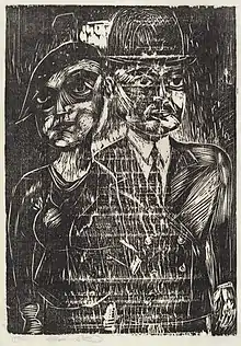 ![]() Woodcut – Man with bowler hat and woman with beret (Sam Glankoff, 1925) | |