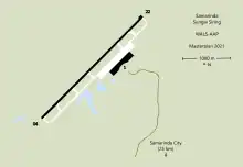 A 1992 planning study by Civil Aviation and Public Works departments identified the district of Sungai Siring, as a possible airport replacement site. Away from the congested city centre, flight paths would be routed over North Samarinda rather than populous urban areas, enabling efficient round-the-clock operation of multiple runways.[16] The Sungai Siring (SGS) airport master plan was completed in 1995. In 1998, however, the government shelved the project for financial and economic reasons. The Airport Location Study was undertaken by Indonesian consultants. This study came up with four recommended locations for overall strategic development in Samarinda. One of the four assumed a new airport at Makroman; a second assumed a new airport at Palaran; the third assumed a new airport at Sungai Siring; and the fourth assumed a new airport at Bayur.[17] In November 2003 the Governor of East Borneo announced that a decision had been made on the Airport Location Study. The strategy was a replacement airport at Sungai Siring, levelled to a height of 25 metres.[18]