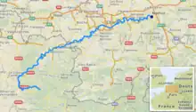 The source of the Sambre is near Le Nouvion-en-Thiérache, in the Aisne département. It passes through the Franco-Belgian coal basin, formerly an important industrial district. The navigable course begins in Landrecies at the junction with the Canal de la Sambre à l'Oise, which links with the central French waterway network (or did, until navigation was interrupted in 2006 following structural failures).[1] It runs 54 km and 9 locks 38.50m long and 5.20m wide down to the Belgian border at Jeumont. From the border the river is canalised in two distinct sections over a distance of 88 km with 17 locks. The Haute-Sambre is 39 km long and includes 10 locks of the same dimensions as in France, down to the industrial town of Charleroi. The rest of the Belgian Sambre was upgraded to European Class IV dimensions (1350-tonne barges) in the immediate post-World War II period. It lies at the western end of the sillon industriel, which is still Wallonia's industrial backbone, despite the cessation of all the coal-mining and a decline in the steel industry. The river flows into the Meuse at Namur, Belgium.