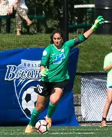 Prudhomme was selected by the Boston Breakers with the 31st overall pick in the 2017 NWSL College Draft. She signed with the team on April 4, 2017.[13] Prudhomme started five games in her rookie year, filling in for starting goalkeeper Abby Smith when she was injured. She helped the Breakers stop a seven-game losing streak. Prudhomme was the first Breaker to record three consecutive shutouts and broke the club record for shutout minutes.[14][15]