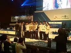 Samsung's League of Legends division was created on September 7, 2013, after MVP's two teams, MVP Blue and MVP Ozone (formerly MVP White), were acquired by Samsung as Samsung Blue (SSB) and Samsung Ozone (later Samsung White - SSW).[1] Samsung Blue won the 2014 LCS Summer Split. Samsung White won the 2014 World Championship, while Samsung Blue finished at semifinals.[2][3] The two teams later merged due to "one organization - one pro team" rules by Riot Games for every top leagues. Samsung Galaxy went on to finish as the runners-up of the 2016 World Championship and the champions of the 2017 World Championship. Samsung Galaxy's rosters and LCK spot later was acquired by KSV Esports, now Gen.G.