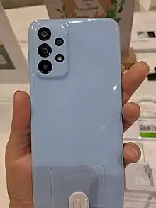 The Samsung Galaxy A23 is an Android-based smartphone designed, developed and marketed by Samsung Electronics as a part of its Galaxy A series. The phone was announced on March 4, 2022, alongside the Galaxy A13.[1][7][8]