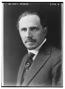 Rabbi Samuel Buchler (March 21, 1882 April 1971), was the President of the Federation of Hungarian Jews in America, in 1909 in New York.[1] He was the Deputy Commissioner of Public Markets for New York City in 1919.[2] He was also a lawyer and Jewish chaplain at Sing Sing prison. He was charged with grand larceny in 1932 and was disbarred.[3][4] He purportedly took money from clients to aid in immigration, but didn't do any work and pocketed the money.[5] He died in Brooklyn in 1971.[6]