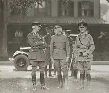 In early 1917, shortly before the American entry into World War I, the army was preparing for its involvement in the war raging in Europe on the Western Front, and all academy instructors who could be detailed were assigned to field commands. This left an understrength USMA teaching staff not only doing "double duty," but also teaching in officer training schools during the summer.[24] When Colonel Tillman was recalled from retirement to serve as USMA superintendent in June, 1917,[5] the cadet class of 1917 had already graduated two months early and been assigned to wartime posts. The USMA class of 1918 graduated in the Autumn of 1917, the classes of 1919 and 1920 graduated in June 1918, and the cadet class of 1921 were graduated before the Armistice with Germany was signed. "On November 2, 1918, the Corps of Cadets consisted of members of the Fourth Class only."[24] Tillman had seen the graduation of an entire corps of cadets before he was again retired, this time with promotion to brigadier general and the Army Distinguished Service Medal for his wartime service.[5] The citation for his Army DSM reads: