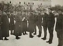 Samuel Woodfill (January 6, 1883 – August 10, 1951) was a major in the United States Army. He was a veteran of the Philippine–American War, World War I, and World War II. Woodfill was one of the most celebrated American soldiers of the early 20th century. General John Pershing called Woodfill the most outstanding soldier in World War I.[1] During an offensive in October 1918, he single-handedly neutralized three German machine gun emplacements while suffering under the effect of mustard gas, and was able to successfully lead his men safely back to the American lines without casualties. Woodfill was considered to be one of America's most decorated soldiers in World War I.[2] He received the Medal of Honor (which General Pershing presented on 9 February 1919), the French Légion d'honneur in the degree of Chevalier, the French Croix de guerre with bronze palm, the Montenegrin Order of Prince Danilo I in the degree of Knight and the Italian Croce al Merito di Guerra among other awards.[3] So legendary was Woodfill's renown, that almost 11 years after the war ended, a Polish Army delegation presented him two medals. The presentation occurred during the 11th Annual National Convention of the American Legion held in Louisville, Kentucky from 30 September - 3 October 1929.[4][5]