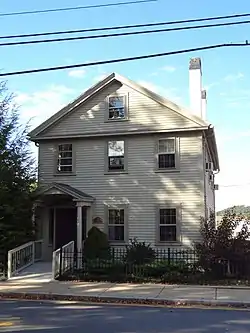 The Samuel Wyatt House is located in an area just south of Dover's downtown area, known historically as Tuttle Square, the city's commercial center during the first half of the 19th century. It is located on the north side of Church Street at its junction with Academy Street. The house is 2+1⁄2 stories in height, with a front-gable roof and clapboarded exterior. It is three bays wide, with a side hall entry flanked by sidelight windows and topped by a fanlight. A portico supported by Doric columns shelters the entrance. A two-story ell was added onto the north (rear) end of the house, and modified in 1938 to accommodate a garage in its basement area. The interior retains original features, including wide flooring, Greek Revival fireplace surrounds, and door and window hardware.[2]