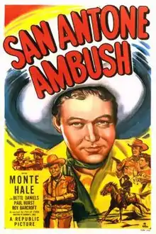 San Antone Ambush is a 1949 American Western film directed by Philip Ford and written by Norman S. Hall. The film stars Monte Hale, Bette Daniels, Paul Hurst, Roy Barcroft, James Cardwell, and Trevor Bardette. The film was released on October 7, 1949, by Republic Pictures.[1][2][3]