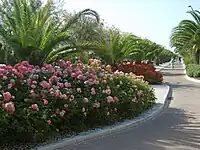 In addition to the pedestrian area and the cycle path, there are "thematic gardens", the "oases": arid garden, wet garden, palm garden, rose garden, Mediterranean bush garden. The materials chosen are compatible with the new vocation of the waterfront in order to make these features look like real natural spaces on the sea, where to stop to admire the view, or for direct access to the beach. On the official website of the Municipality it is possible to admire the photos of the new waterfront and also make a virtual tour. In 2016, work began on the redevelopment of the northern promenade, which extends for about 2 km and goes from the "Palazzo Las Vegas" to the Albula stream.[19]