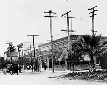 The arrival of the Los Angeles and San Gabriel Valley Railroad in 1887, later purchased by Santa Fe Railroad, led to La Cienega Mud Springs being first mapped.[15][16] The ensuing land boom resulted in the formation of the San Jose Ranch Company, which first laid out streets. Small businesses began to open soon thereafter, and the city took on a new name: San Dimas. Growth was rapid, and San Dimas soon became an agricultural community. Wheat and other Midwestern United States crops were planted first; then orange and lemon groves covered the town and the San Gabriel Valley. At one time, four citrus packing houses and a marmalade factory were located in San Dimas. The Sunkist name originated here, first spelled "Sunkissed".[11] Oranges were the major crop and business in San Dimas until the mid-20th century.
