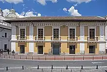The station is located in the historic center of Quito, in the eastern corner of Plaza de San Francisco, at the intersection of Calle Sebastián de Benalcázar and Calle Sucre. One of the entrances has been built within a historic building.[4]