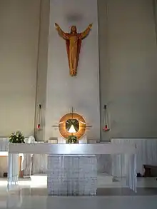 It was built in the twentieth century by the architect Aldo Aloysi. The church is located in an elevated position with respect to the square outside and is accessed by a ladder on the left side. Totally built of reinforced concrete, the church is flanked by a high bell tower, which features a statue of Christ with outstretched arms.