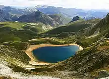 Lago del Ausente also has its own legend, which is about an old Avara woman who lived in a village nestled among rocks. Because of her selfishness, the inhabitants of the village abandoned it, leaving the old woman there alone. One day, a snowstorm surprised her and, without her being able to flee, the village was buried. It is said that on winter nights you can still hear the cries of the old woman who will live forever at the bottom of the Ausente Lake.[25]