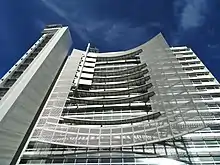 San José City Hall is the seat of the municipal government of San Jose, California. Located in Downtown San Jose, it was designed by Pritzker Prize-winning architect Richard Meier in a Postmodern style. It consists of an 18-story tower, an iconic glass rotunda, and a city council chamber wing, laid out within a two-block-long public square known as San José Civic Plaza. The tower rises 285 feet (87 m) above the plaza, making it the fourth tallest building in San Jose.
