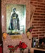 For most devotees San La Muerte offers personal and non-transferable protection that will only be accessible to others when – after the death of the original owner – he or she has acquired the sculpture. There are also intermediaries such as brujos and traditional healers (curanderos) who invoke San La Muerte's power on behalf of their clients, usually concealing the image from sight of their customers. In other cases San La Muerte is kept as a concealed household saint, extending his protection upon all family members with no distinction. A number of public altars that are devoted to San La Muerte can also be found. They are run by devotees acting as guardians of and caretakers for these altars. Some of these altars host public festivities on 15 August as San La Muerte's saint's day. (Since the Catholic Church evidently has assigned no day for veneration of a saint it does not recognize, the date is somewhat contested and in some cases his day is celebrated on 13 August.)[4] The feast day of San La Muerte (15 August) falls on the feast day of the similar folk saint Santa Muerte, though her feast day can be celebrated on 1 November.