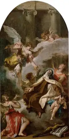 - Sebastiano Ricci: Ecstasy of St. Teresa of Avila, ca. 1725, altarpiece of the second chapel on the right.