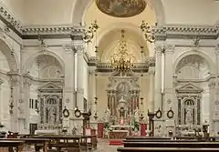 The present church was first erected in the 12th century. Major reconstruction was designed by Antonio Gaspari, and completed in 1730-1736 by Giorgio Massari. The facade was never completed. The church has a large collection of statues by Gaetano Susali, and paintings by Francesco Migliori. It has a Last Supper by Jacopo Tintoretto on the left side of the apse.