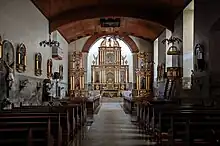 In this church, the first tabernacle outside Manila was built including the first Eucharistic Procession outside of Manila on October 9, 1600.[2][5] On October 8, prior to the eucharistic procession, choirs from Santa Ana de Sapa, Pangil, Nagcarlan, Pila and Lumban sang in a mass officiated by Father Juan Montes de Oca, provincial of the Augustinians.[5] Based on the records of Felix Huerta, the parish has two chapels dedicated to Saint Sebastian and the Holy Cross.[6] Adjacent to the church is the church convent (convento) built under the term of Father Francisco de Cañaveras.[6]