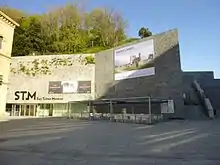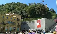 The ambitious project of refurbishment and enlargement, designed by the architects Fuensanta Nieto and Enrique Sobejano, features a modern extension of the old site into the lower wedge of the hill Urgull, thus allowing for further space to accommodate new cultural and commercial uses, as well as easing access for both visitors and collections.[15] The new two pavilions have replaced a former building added in the mid-20th century altering the original concept of the monument, so it was subject to demolition on the commencement of the work.[16] The main entrance, besides providing direct access to the old buildings, constitutes a natural link with the new areas for cloakrooms, shop, events room, cafeteria, and all the necessary spaces needed in a museum of this kind.[17]