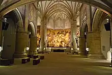 The rehabilitation of the convent has revealed remains of Mannerist paintings in the church apse, researched by Pedro Echeverria from the Basque public university, UPV-EHU, linked to the most relevant painters of the period. These paintings make the church more attractive, alongside the renowned large-format canvases by Josep Maria Sert.[25] On re-opening in 2011, the goal of the new museum was not just to remain a museum, but to become a cultural venue on a par with the likes of the Musée du Quai Branly in Paris, or the V&A Museum in London. At any rate, with regards to architecture, the building of San Telmo remains a spot specially suited to its city and citizens, as well as remaining a landmark on the international scene.[26]