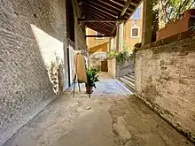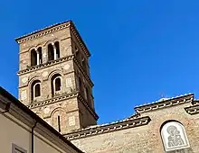 The bell tower, a remarkable example of Romanesque architecture datable to the early 14th century, was restored to its original appearance after "modernization" works carried out in the 17th century -when it was covered with stucco- and in 1708.[55]