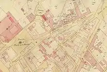 The aquarian fistulas in question, according to Lugli's reconstruction, belonged to the rainwater drainage system of the present sanctuary -at the time almost certainly a nymphaeum[7] rather than a temple as proposed by some archaeologists-[10] and were connected to some thermal rooms located under the present-day Palazzo Camerale and Palazzo Savelli, which in turn were connected in the Severan age with the imposing Baths of Caracalla, the ruins of which still stand near the Albano train station.[7]