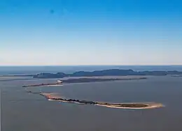 ![]() Baker Bay, with Cape Disappointment in the background, Sand Island in the middle, and East Sand Island in the foreground | |