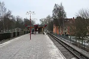 Sandsborg metro station is a station on the green line of the Stockholm metro, located in Gamla Enskede, Söderort. The station was inaugurated on 1 October 1950 as part of the inaugural stretch of Stockholm metro between Slussen and Hökarängen.[2] The distance to Slussen is 4.4 km (2.7 mi).