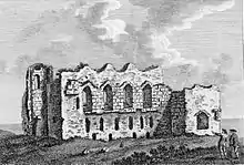 Repairs were made to the castle between 1610 and 1611 by the captain, Sir George Bampfield, at a cost of £211.[19][lower-alpha 1] A survey in 1623 carried out by Sir Richard Morryson showed the castle to be equipped with ten iron guns – one culverin, five demi-culverins, two sakers, a minion and a falcon – and garrisoned by its captain, five gunners and three soldiers.[20] It was in a poor condition, and one corner of the gun platform had been undermined by the sea; Morryson's team estimated the likely costs of repairs to amount to £459.[21][lower-alpha 1]