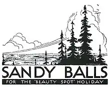 In 1934, 12 simply furnished camping huts were built and next year the first brochure was produced, entitled "Sandy Balls for the Beauty Spot Holiday". As the original aim of Aubrey Westlake was to use the location to provide a simple, low cost holiday for families, the original cabins were placed among the trees.