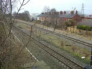In 1896 the then Archbishop of Canterbury, Edward Benson died at Hawarden Castle and his body was put on the train at Sandycroft to be returned to London.[3] The station closed on 1 May 1961,[4] although a private siding remained in use for some time after, and the 1980s the number of tracks running through the abandoned site were reduced down to two. The signal box was taken out of use and demolished in 2005[5] and there are no structures or platforms on the site left to be seen.