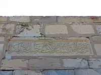A kitabe has been preserved on the north-eastern facade of the caravanserai. The Arabic inscription reads:[5]