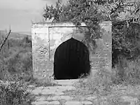 The architecture of the facades is devoid of any decor; the entire complex is characterized by an alternation of wide and narrow rows of masonry, a slightly protruding stone cornice and rarely located stone gutters - gargoyles. The caravanserai is rectangular in plan. The Sangachal caravanserai, like the Miadjik (Absheron peninsula, 15th century), has an inner courtyard.[8] The entrance is arranged in a rather original way: between two small rooms in the lower tier of the portal, there is a deep opening covered with a lancet vault, which leads to the courtyard. The internal layout of the caravanserai is strictly symmetrical. The yard is framed with isolated rooms. Some of which were intended for merchants, some were previewed for the pack cattle and the goods.[9] Two L-shaped stone swing staircases lead to a two-storey portal part. At the top of the central volume of the main facade there was a balakhane - three small rooms, to which open stairs that led from the courtyard. Probably, the balakhane rooms were intended for the most noble people of the caravan.[10] The buildings of premises differ: transverse (two-row), longitudinal (single-row). Opposite to the entrance there is an open-type room with a pointed arch. The side wings of the courtyard are of a closed type, with sparsely spaced openings along the perimeter of the stables. The overlap of all rooms was made up of pointed vaults, typical for the stone architecture. The construction work, especially the laying of the pointed vaults, was of a high quality.
