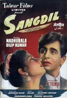 Sangdil (transl.Stone-hearted) is a 1952 Indian Hindi-language romantic drama film directed by R. C. Talwar. The film is an adaptation of the 1847 Charlotte Brontë classic novel Jane Eyre and it stars Dilip Kumar, Madhubala in lead roles. The film's music is by Sajjad Hussain and film song lyrics by Rajinder Krishan.[2][3]