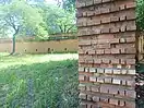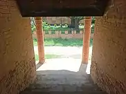 The citadel is situated inside the enclosed area of the inner brick wall. Its area is around 600 x 600 feet. Its walls are 14 to 20 feet high.[lower-alpha 1] There are 4 guarding posts (pillars) in the 4 corners of 4 directions. The southern passageway door leads to the Govindajee Temple of the Kangla.[14][15] It is constructed by using well-burnt bricks. It houses many holy sites, including the coronation site of Pakhangba.[lower-alpha 2] It has three main entrance gates. Two entrance gates are on the western side and one entrance gate is on the southern side. The entrance gate situated on the left end of the western face lies directly opposite to the Royal Coronation Hall. The entrance gate situated at the right end of the same wall lies facing the Court Room (Darbar Hall). The southern entrance gate is well connected with a passageway leading to the Shree Govindajee Temple of the Kangla.[16][17][18]