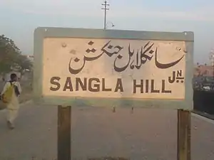 Sangla Hill Junction Railway Station (Urdu: سانگلہ ہل جنکشن ریلوے اسٹیشن, Punjabi: سانگلہ ہل جنکشن ریلوے اسٹیشن) is located in the Sangla Hill town in Nankana Sahib District, Punjab, Pakistan. The station serves as a major junction between the Shahdara Bagh–Sangla Hill Branch Line, Khanewal–Wazirabad Branch Line and Sangla Hill–Kundian Branch Line.