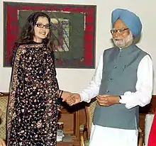 Mirza was named one of the "50 Heroes of Asia" by Time in October 2005.[14] In March 2010, The Economic Times named Mirza in its list of the "33 women who made India proud".[15] She was appointed as the UN Women's Goodwill Ambassador for South Asia during the International Day for the Elimination of Violence against Women on 25 November 2013.[16] She was named in Time magazine's 2016 list of the 100 most influential people in the world.[17]